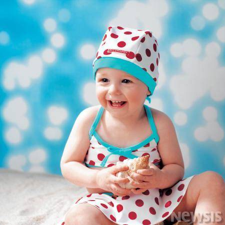 이들 수영복은 유아의 신체에 자극이 없고 편안한 착용감을 주는 폴리에스테르와 폴리우레탄의 혼방소재인 고급스러운 폴리 수입소재를 사용, 물에 젖었을 때도 아기의 움직임에 전혀 불편함이 없도록 디자인됐다.(사진=아가방 제공)/서경리기자 sougr@newsis.com