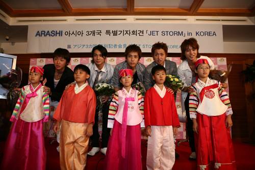 기자회견은 아라시를 소개하는 비디오를 상영하는 것으로 시작됐으며 하루 동안 3개국을 도는 강행군을 펼친 탓에 다소 피곤한 기색이 엿보였지만 한복을 입고 꽃다발을 전달한 어린이들과 다정하게 사진 포즈를 취하기도 하고 사쿠라이 쇼는 능숙한 한국어로 인사를 전하기도 해 취재진들을 놀라게 하기도 했다.