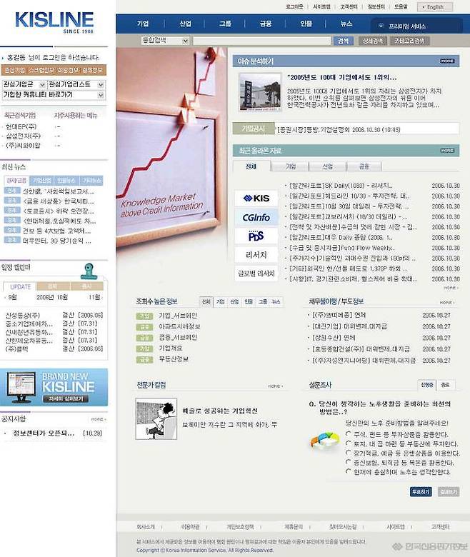 주요 콘텐츠 개편에서는 신용관련 모든 지식의 일괄조회를 위해 △각종 협회, 공공기관, 연구소, 증권사 등이 제공하는 국내외 산업통계를 DB화 집중 △변별력이 입증된 기업신용도에 관한 객관적 평점 제공 △기업의 지배구조와 관련된 전문 보고서 서비스 △법정관리, 화의, 소송, M&A, 외투기업 등 특수기업 정보제공 등이 포함됐다.