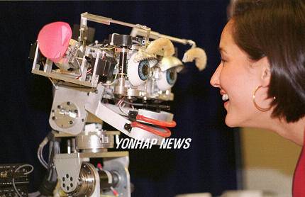 로봇공학자 신시아 브리질 박사가 인간 감정을 모방하고 반응하는 로봇인 '키스메트(Kismet)'와 놀고 있다. 이 사진은 매사추세츠 공과대학이 제공. 인간-로봇간의 상호작용을 연구하는 새로운 분야가 탄생했다. 이 분야의 선두적 연구자들중 상당수가 로봇공학의 여타 분야에서와는 달리 여성들이다(AP=연합뉴스).<저작권자 ⓒ 2006 연 합 뉴 스. 무단전재-재배포 금지.>
