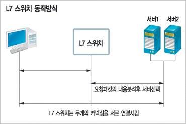 L2ㆍL3 등 기존스위치보다 보안 강화인터넷 트래픽 '해결사'L4스위치 - 장비 가용ㆍ확장성 향상수단 인기L7스위치 - 패킷 URL정보 등 차별화 서비스