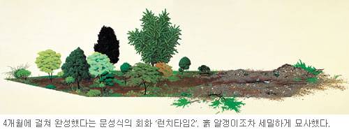 문성식의 나무는 어떤 형태로든 생채기가 나 있다. 2005년 베니스비엔날레 한국관 최연소 작가로 참가해 주목받은 그는 뿌리째 파헤쳐져 나뒹구는 나무와 흙의 입자조차 세밀하게 묘사해 탄성을 자아낸다. 한 작품을 완성하는 데 4개월을 쏟아붓는 집념형이다. 작가는 "예쁘고 서정적인 것 안에 잔혹함이 숨어 있다"고 작품을 설명했다. 그런 까닭인지 그의 나무들은 자연수인데도 마치 조화처럼 보인다.