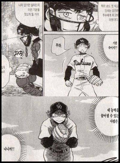 야구만화는 언제나 투수가 최우선이었습니다. 하라 히데노리의 <그래, 하자!!>나 카미오 류의 <라스트 이닝>처럼 선수가 아닌 감독이 주인공이 된 작품도 있지만, 기본적으로 그라운드에서 가장 빛나는 것은 홀로 마운드에 서서 타자에게 공을 던지는 투수였습니다. 카와구치 카이지가 <배터리>라는 작품으로 포수를 중심에 놓고 이야기를 만든 적은 있지만, 포수보다는 프로에서 무실점 행진을 벌이는 고등학교 동기인 투수가 사실상의 주인공이던 작품이었죠.