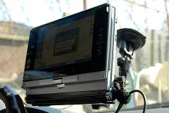차량용 거치대를 이용해 실제 자동차에 장착한 모습. 겉모습은 일반 내비게이션과 큰 차이가 없다. |