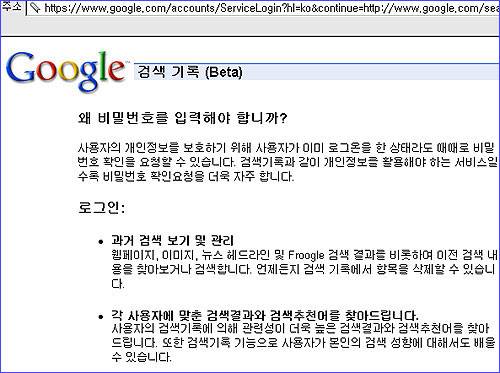 구글이 '웹 히스토리(Web History, http://www.google.com/history)'라는 검색 개인화 서비스를 통해 각 회원의 과거 검색 경향까지 한눈에 파악할 수 있는 기능을 제공하기 시작했다.