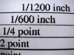 디지털 영상 확대기로 촬영한 크기별 선 촬영 사진이다. 왼쪽이 컬러 잉크젯 프린터, 오른쪽이 컬러 레이저 프린터다. |