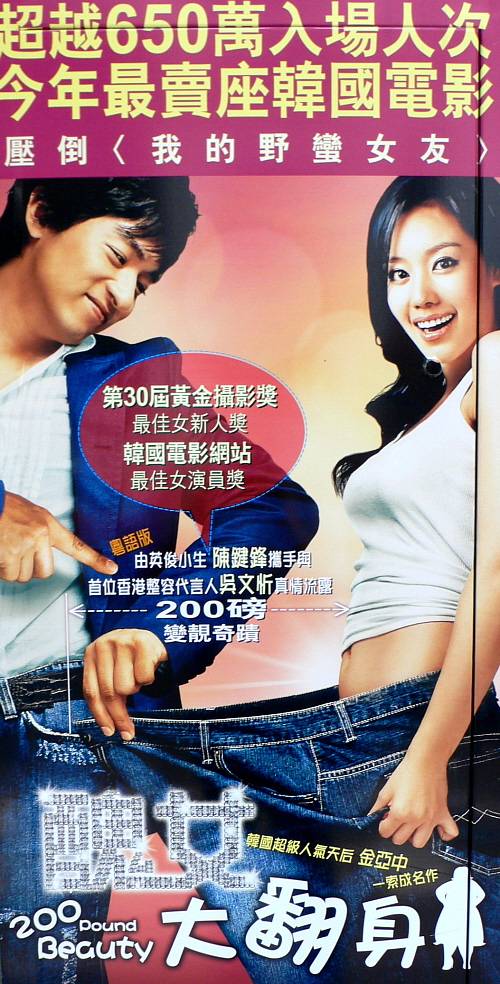 '미녀는 괴로워' 홍콩판 포스터를 찬찬히 뜯어보면 몇 가지 재미있는 점을 발견할 수 있다. 우선 원제 '미녀는 괴로워'를 홍콩식으로 번역한 '醜女大翻身'(추녀대번신)이란 제목이 그것. "못생긴 여자가 몸을 완전히 뒤집다" 정도의 뜻으로 풀이된다.