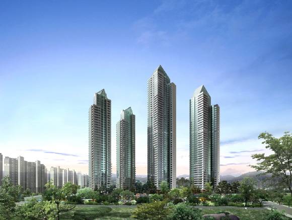 층고를 높인 대신 조경 면적은 46%를 확보하고 건폐율은 9%대로 낮춰 쾌적성을 높였다. 유럽풍 중앙공원과 테마공원, 산책로 등 다양한 조경시설을 꾸민다. 건물 외관과 조경디자인은 호주 하셀사가 마스터 플랜했고 일본 록본기힐스 스위트룸을 디자인한 노부히로 나가지마와 강남 도곡동 타워팰리스를 설계한 최시영 씨 등 국내?외 정상급 디자이너들이 설계에 대거 참여했다.
