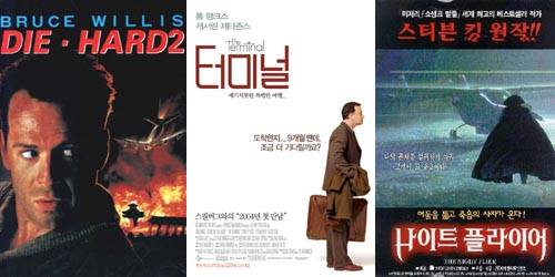 브루스 윌리스의 액션 활극 '다이하드 2'도 공항을 주무대로 삼았다. 맥클레인 형사(브루스 윌리스)가 아내를 마중 나갔다가 뜻하지 않게 테러계획에 휘말리고 죽도록 고생하다 살아난다는 이야기다. 나카토미 빌딩을 초토화시킨 전편의 플롯을 그대로 차용했다.