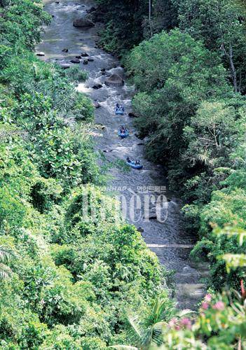 ▲ 래프팅 = 우붓에서 가까운 아융 강이 발리 래프팅의 적지다. 보통 11㎞ 코스를 선택하는데, 물이 깊지 않고 물살도 세지 않아서 초보자도 탈 수 있다.