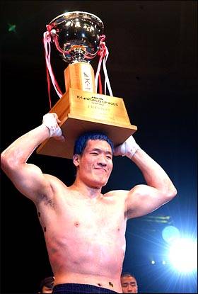 | ▲ 최홍만 선수가 2006년 K-1 월드그랑프리 서울대회에서 우승을 차지하고 기뻐하는 모습입니다. | |