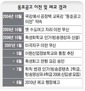[한겨레] 서울시교육청이 아파트 주민들의 민원을 이유로 이전을 추진하던 동호정보공업고를 결국 폐교하기로 했다.
