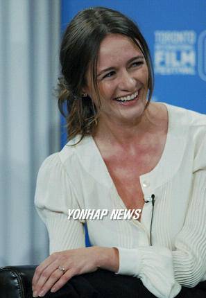 10일 토론토 국제영화제에서 에밀리 모티머가 영화 'Lars and the Real Girl'의 기자회견을 하던 중 웃고 있다.