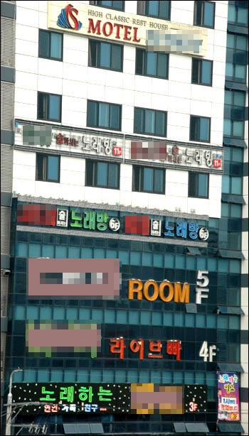 식당(횟집)-노래방(롬싸롱?빠?술집?안마시술소?다방)-모텔.