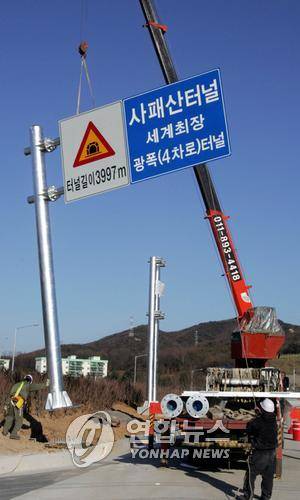 광폭 터널 가운데 세계에서 가장 긴 터널인 사패산터널이 개통을 20여일 앞두고 완전한 제모습을 드러냈다.