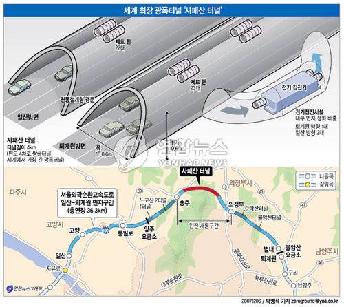 서울외곽순환도로 관리.운영사인 ㈜서울고속도로 관계자는 "아직 기네스북에서는 등재되지 않았지만 터널공학회에서 최장 광폭 터널로 인정해 조만간 관련 논문이 학회지에도 게재될 예정"이라고 말했다.