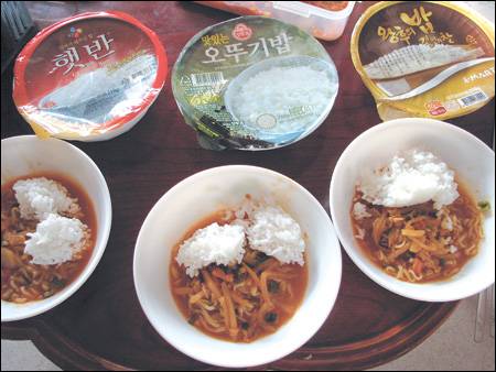 전자레인지가 없는 야외에서는 부드러운 '왕후의밥'을 권하고 싶다. '오뚜기밥'이나 '햇반'을 데우지 않고 먹을 경우, 마치 베타화돼 노화된 전분을 섭취하듯이 쌀알이 똑똑 끊어지는 불쾌한 식감을 준다. 굳은 떡의 식감과 비슷하기 때문에 소화도 잘 안 될 듯.