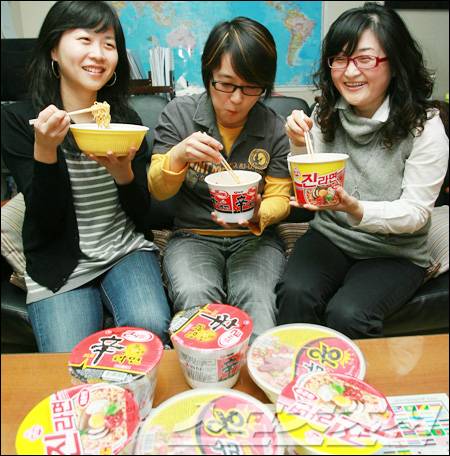 스테디셀러 컵라면인 농심 '신라면', 오뚜기 '진라면' 그리고 야쿠르트의 '왕뚜껑'을 시식해 보았다.