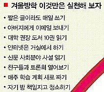 [서울신문] 자녀가 초등학생에서 중학생이 될 때, 중학생에서 고등학생이 될 때 부모들은 뿌듯함을 느낀다. 그러나 정작 본인들은 마냥 좋을 수만은 없다. 무엇보다 학습 부담이 커지고 상급 학교에 진학한 뒤에 뒤처지지 않을까 하는 걱정이 앞서게 된다. 전문가들은 겨울방학을 어떻게 보내느냐에 따라 초기 적응이 달라진다고 한다. 겨울방학때 학생들이 스스로 실천해볼 수 있는 학습 방법을 소개한다.