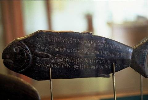| ◇라파누이 상형문자가 새겨져 있는 '롱고롱고' 서판. |
