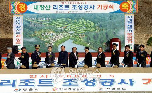 정읍시와 한국관광공사는 5일 내장산 인근 용산동 현지에서 김완주 전북지사와 오지철 관광공사 사장을 비롯한 각계 인사와 시민 등 2천여 명이 참석한 가운데 내장산리조트 기공식을 가졌다.