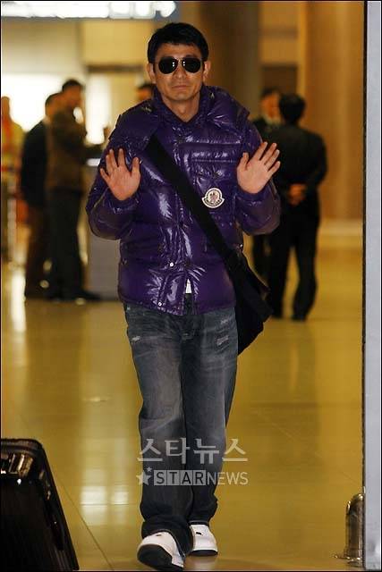 영화 '삼국지-용의 부활'의 배우 유덕화가 22일 오후 7시쯤 인천국제공항을 통해 입국, 취재진에 인사를 하고 있다.