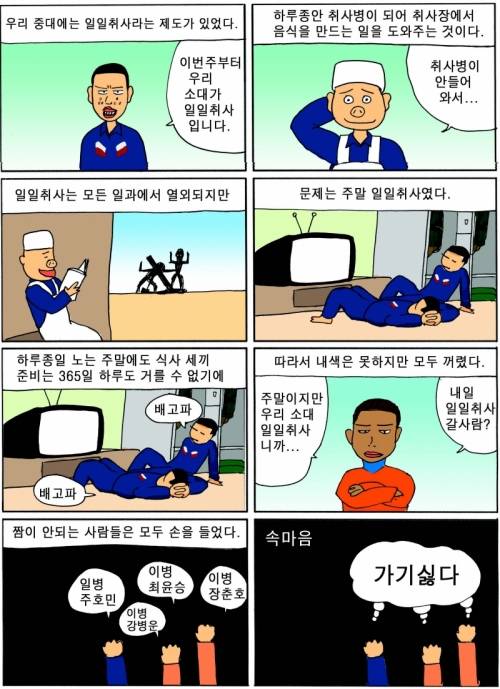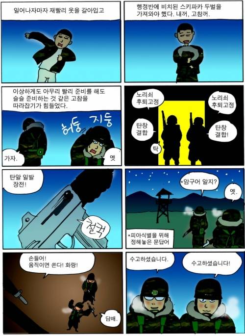 그래서 나는 군대 이야기를 반드시 만화로 그리겠다고 다짐을 했죠. 다른 매체는 아예 생각도 못했거든요. 군대 가기 전 '삼류 만화' 사이트에서 연습장 만화를 스캔해서 올리는 정도였으니까요.