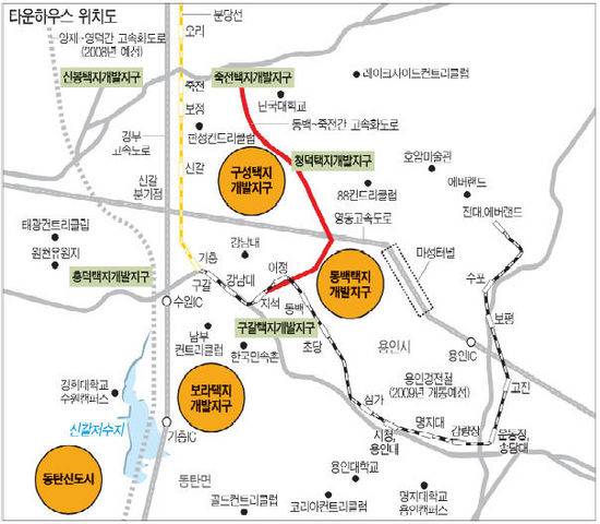 구성지구는 분당 남단의 용인 죽전지구 바로 밑에 있다.