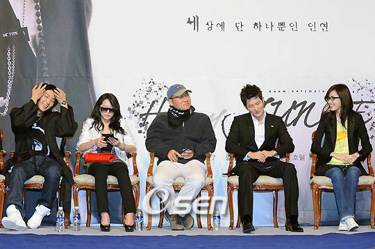 한류스타 이준기가 27일 저녁 서울시 중구 소공동 롯데호텔 크리스탈 볼룸에서 자신의 27번째 생일을 맞아 국내외 팬 1000여 명과 함께 공식 생일파티를 개최하였다. 생일파티 중에 SBS 새 드라마 일지매의 출연진(왼쪽부터 이준기, 이영아, 이용석 감독, 박시후, 한효주)을 초대하고 인터뷰를 갖고 있다. /민경훈 기자 rumi@osen.co.kr