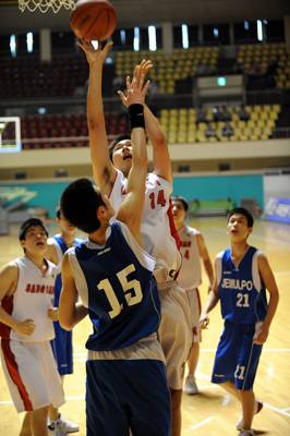 최형석이 외곽을 지킨다면 2학년 홍성민은 명지고 골 밑을 지켰다. 매 경기 최형석에 이어 팀내 득점 2위에 이름을 올렸을 정도로 출중한 기량을 보여왔다. 신장에 비해 체중이 80kg 밖에 되지 않아 아직은 아쉬운 부분이 있지만, 성장세를 계속 이어간다면 좋은 선수가 될 수 잇을 것이다.