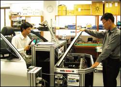동아대 산학협력단 건물 미디어바이스연구센터의 한 켠에 마련된 연구실. 부산지역의 GIS 관련 기술 개발업체인 ㈜유비텍의 홍승욱 대리가 파견돼 컴퓨터 시뮬레이션을 관찰하고 있었다. 유비텍은 동아대와 산학협력을 체결한 기업체로 지식경제부가 추진하는 장기사업 중 하나인 지능형 컨테이너개발사업에 참여해 통신모듈 개발에 참여하고 있다.