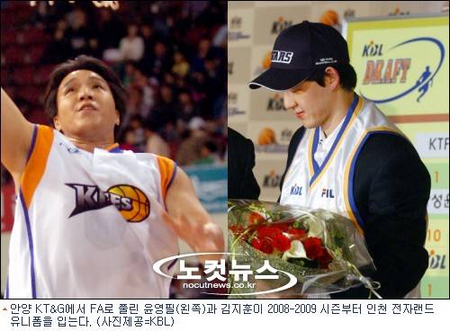 자유계약선수(FA) 윤영필(33 · 192cm)과 김지훈(26 · 183cm)이 2008-2009시즌부터 인천 전자랜드 유니폼을 입게 됐다.
