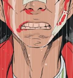 석가 : (끄덕) 좀 뜬금없지만, 오래 전부터 형 만화를 접할 때마다 느꼈던 건데요, 피뿐만이 아니라 정액이라든지, 땀, 콧물 같은 것들이 자주 보이는 거에요. 그게 어느 순간부터는 역겨운 게 아니라'철푸덕 철푸덕'같은 효과음과 어우러져서 만져보고 싶다는 생각까지 들게 되거든요. 좀 이상하지만 애정 같은 게 느껴진다고나 할까요, 흐흐흐.