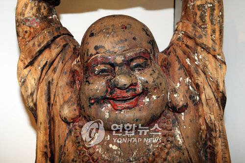 특별전 출품작 중 15세기 명나라 때 제작한 것으로 추정되는 목제 포대화상은 특히 인상적이다. 전매특허인 남산 만한 배와 만면의 웃음이 여전한 이 포대화상은 두 손을 번쩍 든 채 대형 소반을 받친 모습을 하고 있다.