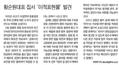 경찰도 좀 과하다고 생각했나보다. 한국일보는 기사에서 "황씨의 영장에 적시된 문건 외에는 '이적표현물'이라고 볼만한 자료가 추가로 확인되지 않았다"는 경찰 관계자의 얘기를 전했다.
