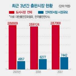 도서시장은 최근 3년간 총 매출에 큰 변화가 없지만, 온라인 서점만은 꾸준히 상승세를 타고 있다. 지난해 출판업계 매출은 2조7000억원으로 2년전 수준에서 맴돌고 있다. 그러나 온라인서점 시장 비중은 2005년 4957억원(점유율 18%)에서 2006년 6277억원(24%)으로, 2007년에는 7442억원(28%)까지 늘었다. 온라인 도서시장이 정체된 출판업계의 블루오션이라 할 수 있다.