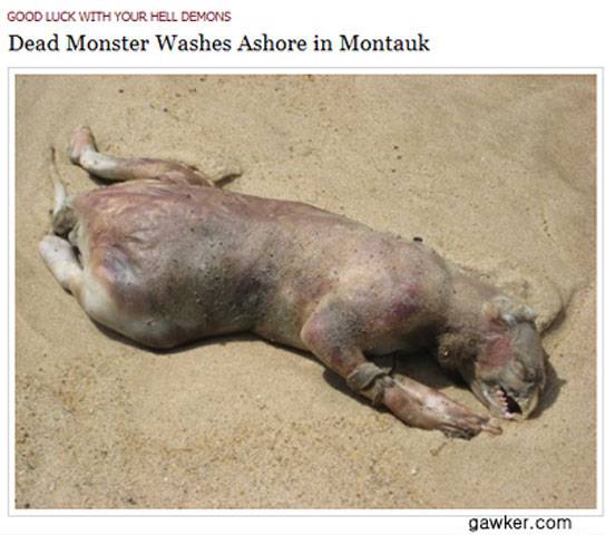 이 괴생물체가 새긴 모양은 일단 입이 독수리 부리라는 점이다. 이빨은 공룡처럼 날카롭고 몸은 큰 쥐처럼 생겼다. 이 괴생물체는 최근 미국 롱아일랜드 몬탁 해변에서 사체로 발견됐다.