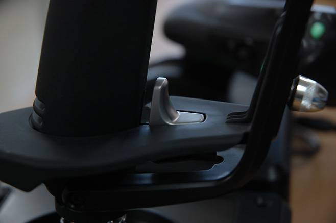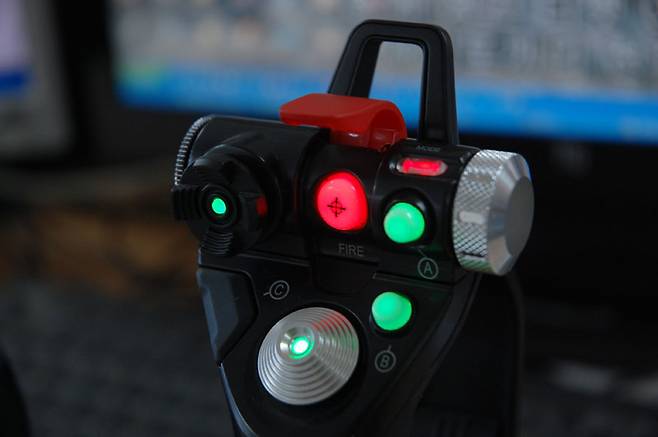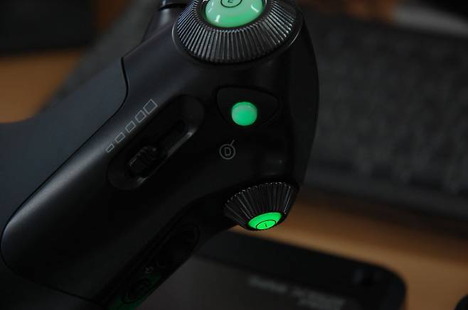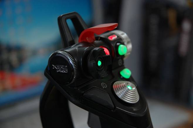 이중 눈에 띄는 부분은 다양한 전투기에 최적화된 3개의 발사 버튼과 6개까지 늘릴 수 있는 3개의 토글 스위치라고 할 수 있다. 비행 시뮬레이션 게임들이 굉장히 다양한 공격 방식을 지원하고 있지만 기존에 나온 제품들은 많아도 2개 정도의 발사 버튼을 지원해줬다. 그러다보니 사실적인 조종석의 느낌보다는 어설프게 따라한 듯한 느낌만을 줬다. 이 3개의 버튼은 실제 조종석의 전투기 레버처럼 한 손에 모두 들어오며, 그중 메인 발사 버튼은 안전 덮개로 가려져 있어 현실감을 높여준다.