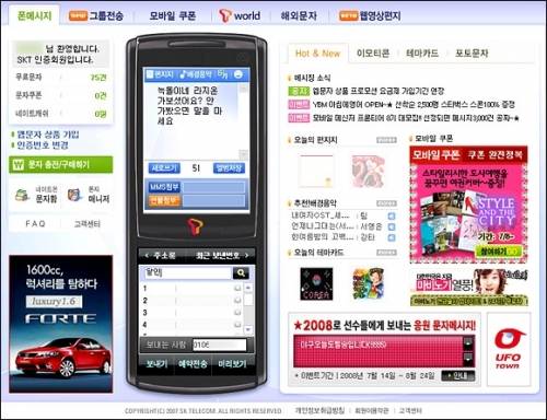 첫 번째 화면이다. 화면의 왼쪽에는 주요 메뉴, 오른쪽에는 각 메뉴별로 관련된 기능이 있다. 지금은 문자메시지가 없으니 몇 가지를 시험 삼아 보내놓고 진행해 보자.