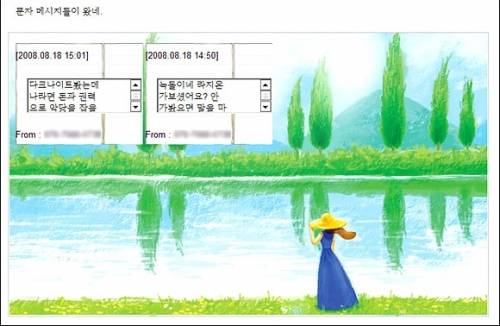 이곳은 폴더 단위로 다양한 문자 메시지를 보관할 수 있는 곳이다. 여기서는 특히 [친구에게 전송] 메뉴를 통해 이메일에 문자 내용을 담아 보낼 수 있다는 특징이 눈에 띈다. 위 두 메지시를 메일에 포함하여 보내면 아래와 같이 도착한다('문자 메시지들이 왔네.'는 메일 보낼 때 적은 내용이다).