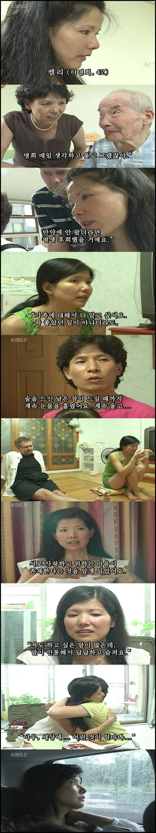 2일 방송된 KBS 2TV '인간극장-그녀가 왔다'2부에서는 명희씨는 어릴 적 아버지가 빚보증을 잘못 서 집안이 어려워지자 주변의 권유로 입양을 가게 됐다. 명희씨는 자신을 무척이나 예뻐해 줬던 아버지에 대한 기억이 남달랐는데 드디어 한국에 와서 병원에 요양중인 아버지를 만났다.