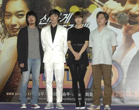 19일 오후 삼성동 코엑스 메가박스에서 열린 영화 '고고70' 언론시사회 장에서 '20대 끝물에 좋은 추억을 남겼다'고 운을 뗀 조승우는 "이번 영화 작업을 시작하며 밴드 멤버들과 거의 살다시피 하며 진짜 밴드의 일원으로 지냈다"며 "그저 열심히 연습한 노래들을 공연하며 놀면 됐다. 마치 내가 진짜 밴드인 것 같았다"고 말했다.