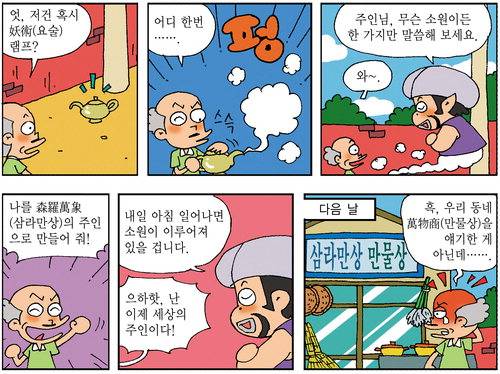 ● 萬物商(만물상) : 일상생활에 필요한 온갖 물건을 파는 장사, 또는 그런 가게.