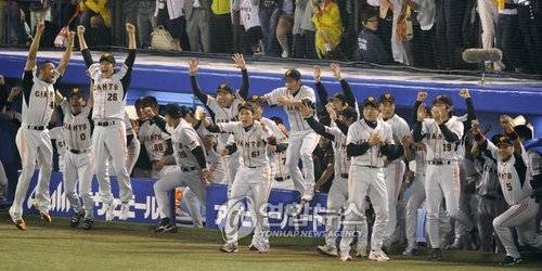 환호하는 요미우리 자이언츠 선수들