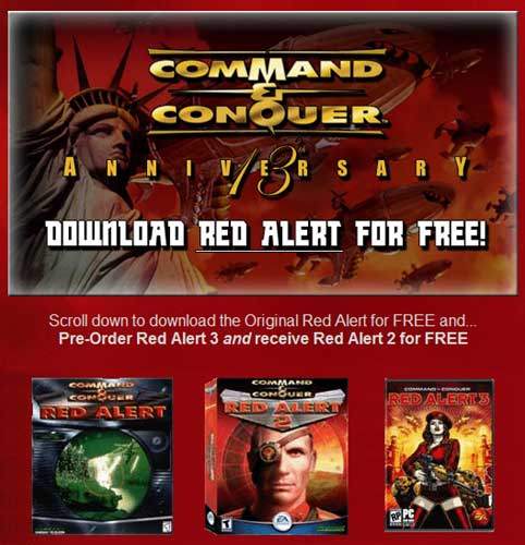 지난해 '커맨드앤컨커'(이하 'C&C') 시리즈 발매 12주년을 기념해 한 달간 'C&C 골드'의 공개 다운로드 서비스를 실시했던 EA는 올해도 13주년 기념 선물로 'C&C 레드얼럿'을 게이머들에게 선사했다. 'C&C 레드얼럿3'의 발매를 앞두고 있는 만큼 다운로드 페이지에서는 'C&C 레드얼럿3'의 동영상을 감상할 수 있으며, 'C&C 레드얼럿3'를 예약판매를 통해 구입할 경우 'C&C 레드얼럿2'도 무료로 받을 수 있음을 홍보하고 있다. 다운받은 파일의 압축을 풀면, ISO 방식의 이미지 파일 형태로 들어있기 때문에 '데몬툴' '알코올'과 같은 이미지 마운트 프로그램이 컴퓨터에 설치돼 있어야 사용할 수 있으며, 윈도XP 이상에서 사용할 수 있도록 동봉된 XP 실행 패치를 함께 설치해야 한다. 멀티 플레이를 이용하기 위해서는 스트라이크 팀 사이트에서 '웨스트우드 챗 소프트웨어'라는 프로그램을 다운로드 받아 설치하면 된다.