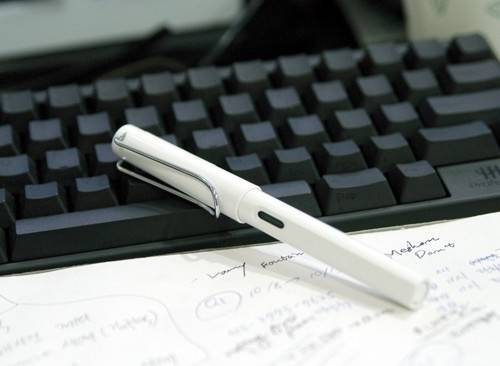 그래서 최근 라미의 사파리 만년필을 구매했다. 이 물건은 원래 4만 원 가량이지만 지인을 통해 12,000의 저렴한 가격에 구매한 것. 원래 유광 화이트 색상은 2007년 스페셜 에디션이다. 라미 사파리는 해마다 스페셜 에디션 컬러 제품이 나오는데 2006년에는 파스텔 블루, 2008년은 라임 컬러다. 적은 수량을 찍어낸 한정판 개념의 리미티드 에디션은 아니지만 이미 파스텔 블루와 화이트 컬러는 일반 매장에서는 구하기 힘든 아이템이 되었다.