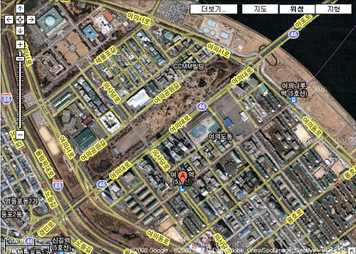 ▲ 지도의 국외 반출을 막고 있던 국내법에 가로막혀 제공되지 못하던 구글의 지도서비스 '구글 맵스(Google Maps)'가 연내 한국에 런칭되는 사실이 확인됐다. (위) 기존의 구글 어스 위성지도. (아래) 이번에 제공될 예정인 상세 도로지도가 위성사진에 겹쳐져 있다. 이는 한국판 구글 맵스의 실제 여의도 지역 사진이다. |