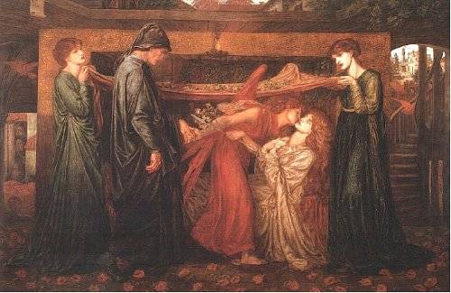 화가는 단테 게이브리얼 로세티로, 부모가 단테를 흠모하여 붙인 이름이다. 작품의 제목은 '베아트리체 죽음에 관한 단테의 꿈'. 호메로스, 셰익스피어, 괴테와 더불어 세계 4대 시성이라 불리는 단테와 그의 운명적 사랑인 베아트리체가 작품의 주인공이다. 단테는 불과 아홉 살에 베아트리체를 만나는데, 그녀의 존재는 그의 영혼과 심장을 관통하는 큐피드의 화살처럼 단 한번의 만남으로 그의 마음속에 영원불멸의 사랑으로 각인되었다. 그러나 그녀는 다른 가문에 시집을 갔을 뿐 아니라, 결혼 2년 뒤 요절하고 말았다. 그녀 나이 방년 24세.