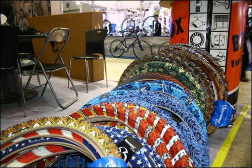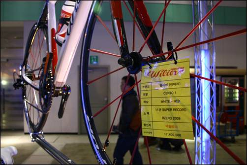 느긋하게 마음을 먹고 매장을 한 군데씩 살폈다. 가장 먼저 눈에 들어오는 것은 디자인이다. 화려한 색깔 자전거와 부품들이 눈을 붙든다. 여기 나온 제품들이 대부분 2009년을 노리고 나왔으니 내년엔 '자전거 디자인 바람'이 거세게 불 조짐이다.