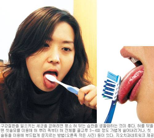 미국 버팔로대 연구팀이 '미 치주병학 저널'에 발표한 논문에 따르면 혀에 사는 '진지발리스' '포르시텐시스' '인터메디아' '렉투스' 등 4가지 세균이 잇몸병을 일으킬 뿐 아니라 뼈 손실을 초래해 골다공증 발병 위험을 높이는 것으로 나타났다. 또 혀에 낀 설태(舌苔)를 방치하면 지속적으로 증가한 세균들이 구강 안 점막을 자극해 구강암 발생률을 배 이상 높이는 것으로 보고돼 있다.